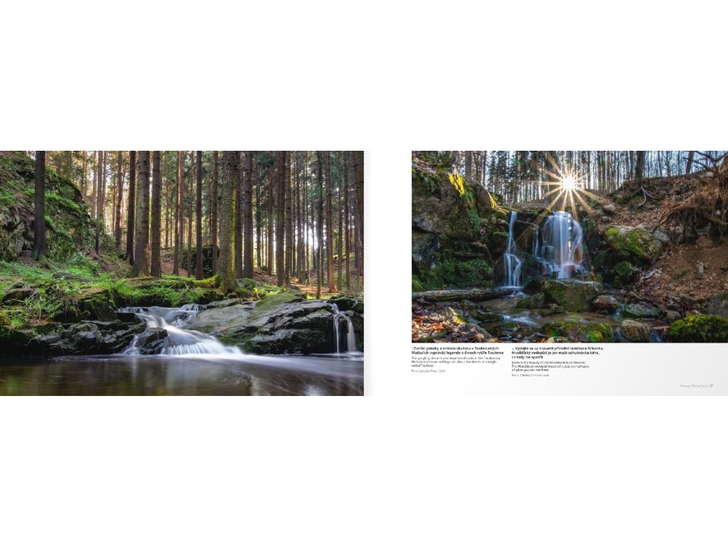Pocit okouzlení, chvíle tichého zasnění i polibek dávné historie, tajemství starých legend a pověstí, nezměrná energie vyzařující z míst, kterými kdysi dávno kráčeli Keltové. Železné hory jsou na světě jediné. Nechte se jimi očarovat!“Krajinářsky a geologicky významné Železné hory mi učarovaly. Místo, kde žiju, kde se probouzím i usínám. Na svých fotkách chci zachytit jejich jedinečnost, chránit přírodní památky a lokality, ale zároveň ukázat, jaké bohatství se zde nachází. V podobě přírodních památek, staveb sakrálních, lidových, ale i těch technických. Chráněnou krajinnou oblastí byly vyhlášeny již před více než třiceti lety. Krása Železných hor je skromná a nenápadná a žít tady je pro mě velký dar. Ráda se toulám a stále objevuji nová místa, kam se mnohdy vracím a fotím je v každém ročním období. Vážím si lidí, kteří pro jejich ochranu a stálou krásu dělají mnoho. Moc děkuji za to, že moje fotky mohou být součástí této úžasné publikace.” Zdenka Kombercová, spoluautorka knihyTato kniha vznikla ve spolupráci s amatérskými i profesionálními fotografy z celé České republiky. “Železné hory poskytují ničím neposkvrněnou krásu pro pořizování fotografií ať profesionálních, či amatérských fotografů. Sama příroda i některé objekty vybudované člověkem jako by čekaly, až je někdo vyfotí. Když někdo putuje touto oblastí z údolí do kopců, podél řek, potoků a okolo skal či rybníků a lomů, jako by fotil svým zrakem. A pokud fotoaparát nemá, lituje, že nemohl trvale zachytit, co spatřilo jeho oko. Kdo se pak rozhodne procestovat Železné hory s fotoaparátem, může náhodně fotit, co mu přijde do cesty nebo si počkat. Počkat na to, až se k říčce přiletí napít ptáček, až slunce prosvítí svými paprsky temný les, vynoří se za zříceninou hradu nebo naopak zajde za hradbou skal. A pak jsou tu proměny krajiny během roku. Jinak bude vypadat zřícenina v holém lese se spadaným zlatým listím a jinak, když kolem ní budou ležet zbytky sněhu a příroda se bude pomalu probouzet. Jinak se bude ve vodní hladině obrovské přehrady odrážet blankytně modrá obloha, jinak to bude vypadat s bouřkovými mračny. Je zde tisíce a tisíce možností, jak a kdy a co fotit. Je to jen na vás”, říká fotograf a spoluautor Michal BoháčV knize Čarovné Železné hory uvidíte snímky od 29 fotografů. Přes 100 fotografií Vám přestaví tento region kouzelným pohledem fotografů, kteří dokáží zachytit ten správný okamžik, kdy zapadající slunce, ranní mlhy nebo silný mráz vykouzlí jedinečnou atmosféru daného místa. Přesvědčte se, že Železné hory jsou opravdu čarovné! Tato kniha je určená milovníkům naší krásné vlasti a je vhodná i pro zahraniční čtenáře – popisky fotografií a texty v knize jsou ve dvou jazycích – v českém a anglickém. Užijte si, prosíme, čarovné pohledy na kouzelné Železné hory. Přejeme Vám příjemný kulturní a estetický zážitek.