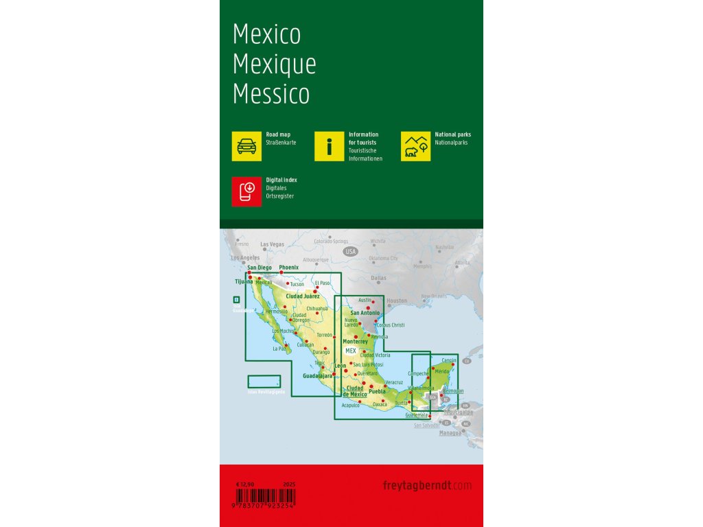 Vďaka mape ciest Mexika v mierke 1:1 500 000 sa cestujúci autom, motocyklom alebo karavanom ľahko zorientujú. Rozsiahla cestná sieť je presne zobrazená a na mape sú vyznačené vzdialenosti a mnohé turistické destinácie.