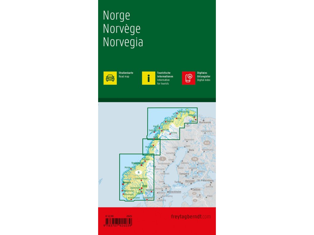 Nórsko je vďaka svojej jedinečnej krajine a pohostinnej atmosfére vysnívanou destináciou pre milovníkov prírody a dobrodružstva. Cestná mapa Nórska v mierke 1:600 000 je ideálna pre aktívnych cestovateľov cestujúcich autom, motocyklom alebo karavanom. Rozsiahla cestná sieť je presne zobrazená a na mape sú vyznačené vzdialenosti a turistické destinácie.