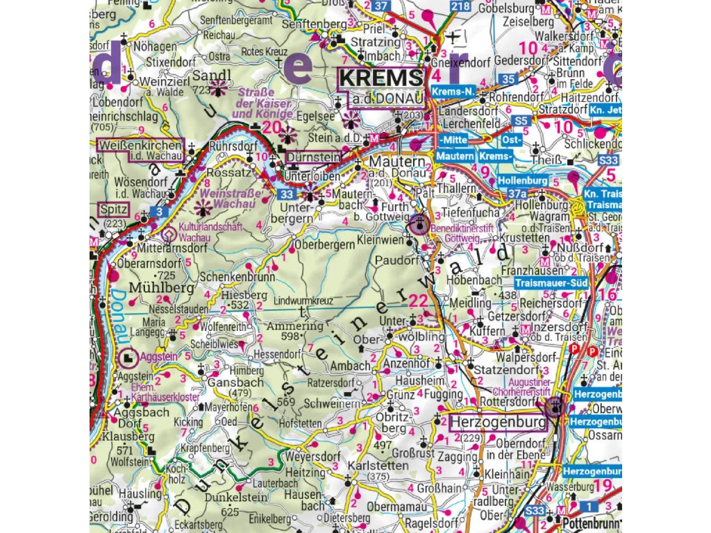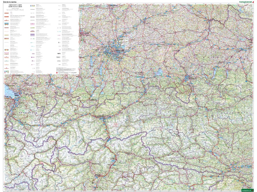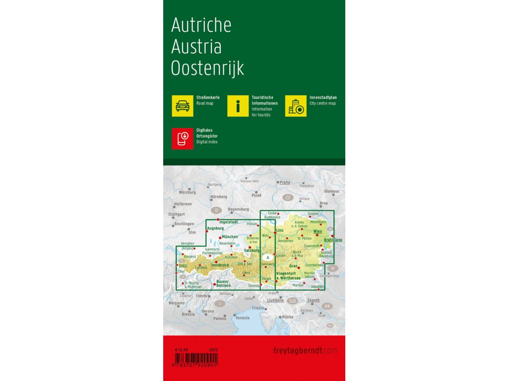 S cestnou mapou Rakúska v mierke 1:300 000 sa dovolenkári cestujúci autom, motocyklom alebo karavanom ľahko zorientujú. Rozsiahla cestná sieť je presne zobrazená a na mape sú vyznačené vzdialenosti a početné zaujímavé miesta.
