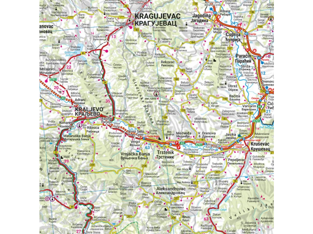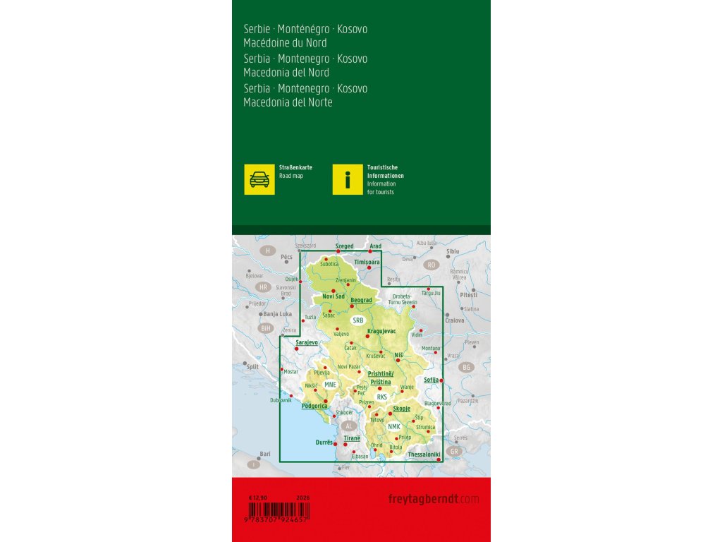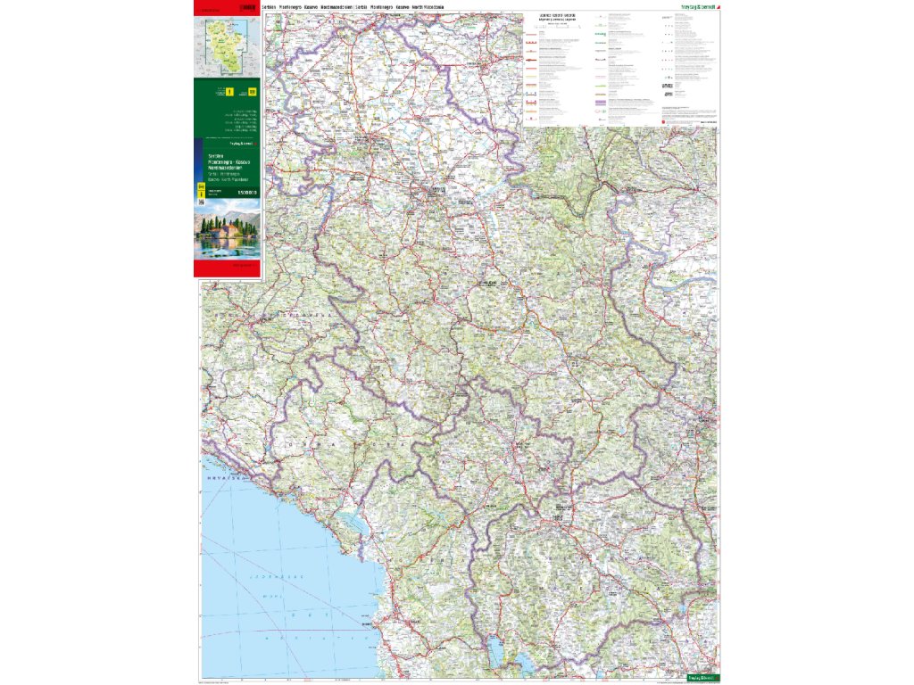 S cestnou mapou Srbska, Čiernej Hory, Kosova a Severného Macedónska v mierke 1:500 000 sa dovolenkári cestujúci autom, motocyklom alebo karavanom ľahko zorientujú. Rozsiahla cestná sieť je presne zobrazená a na mape sú vyznačené vzdialenosti a početné zaujímavé miesta.