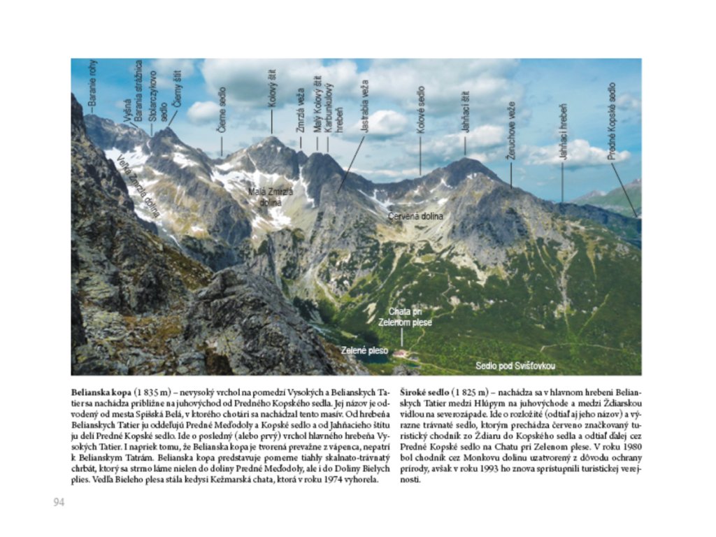 Nová publikácia o Tatrách je textovo-obrazovou prechádzkou po najkrajšom horstve Slovenska. Ponúka obrazové panorámy jednotlivých dolín a štítov s presným popisom a charakteristikou. Čitateľ v nej nájde okrem základných charakteristík tatranských lokalít aj pôvod názvov viacerých vrchov či prvé výstupy na vybrané štíty. Nechýba ani zoznam lokalít, z ktorých pochádzajú jednotlivé pohľady či register najzaujímavejších tatranských vrchov.
