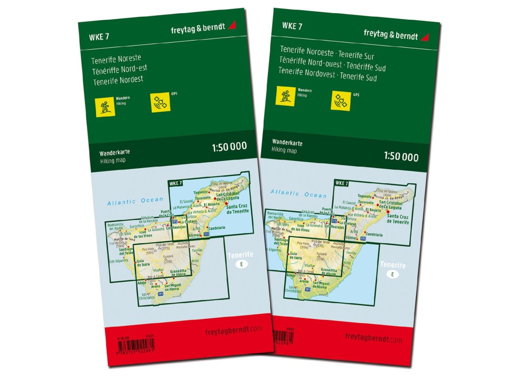 Sada turistických máp Tenerife v mierke 1:50 000 pozostáva z dvoch listov a ponúka informácie o turistických chodníkoch, atrakciách a rekreačných zariadeniach. Turistická mapa je ideálna na túry, cyklotúry a výlety na Tenerife. Umožňuje vám naplánovať si túry a zistiť viac o pamiatkach a vyhliadkach pozdĺž trasy.
